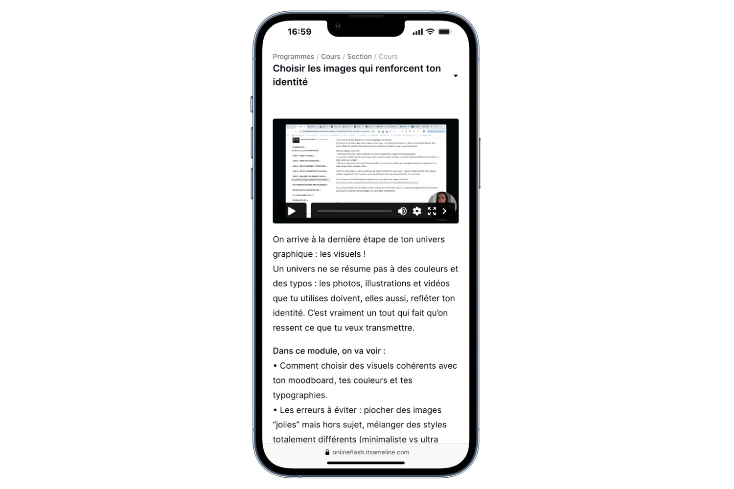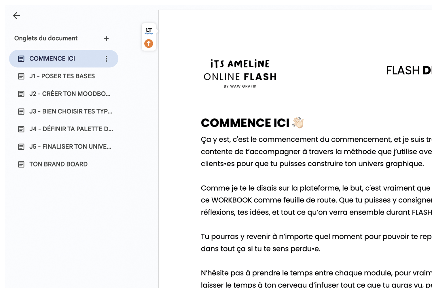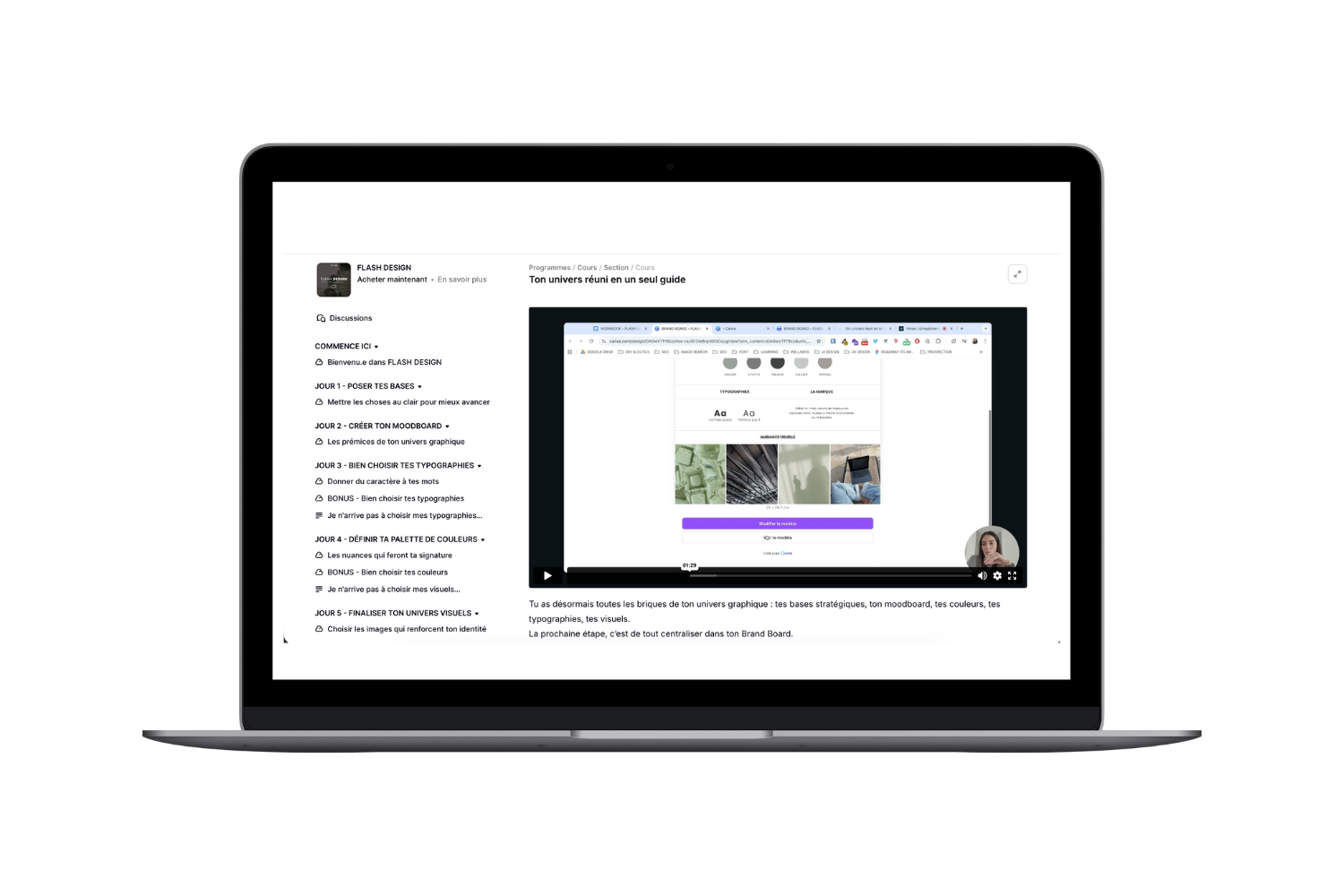 Dans FLASH DESIGN, tu n’es jamais livrée à toi-même avec une page blanche. Chaque étape est structurée pour t’aider à faire des choix cohérents, même si aujourd’hui tu as l’impression de ne “pas avoir l’œil”.